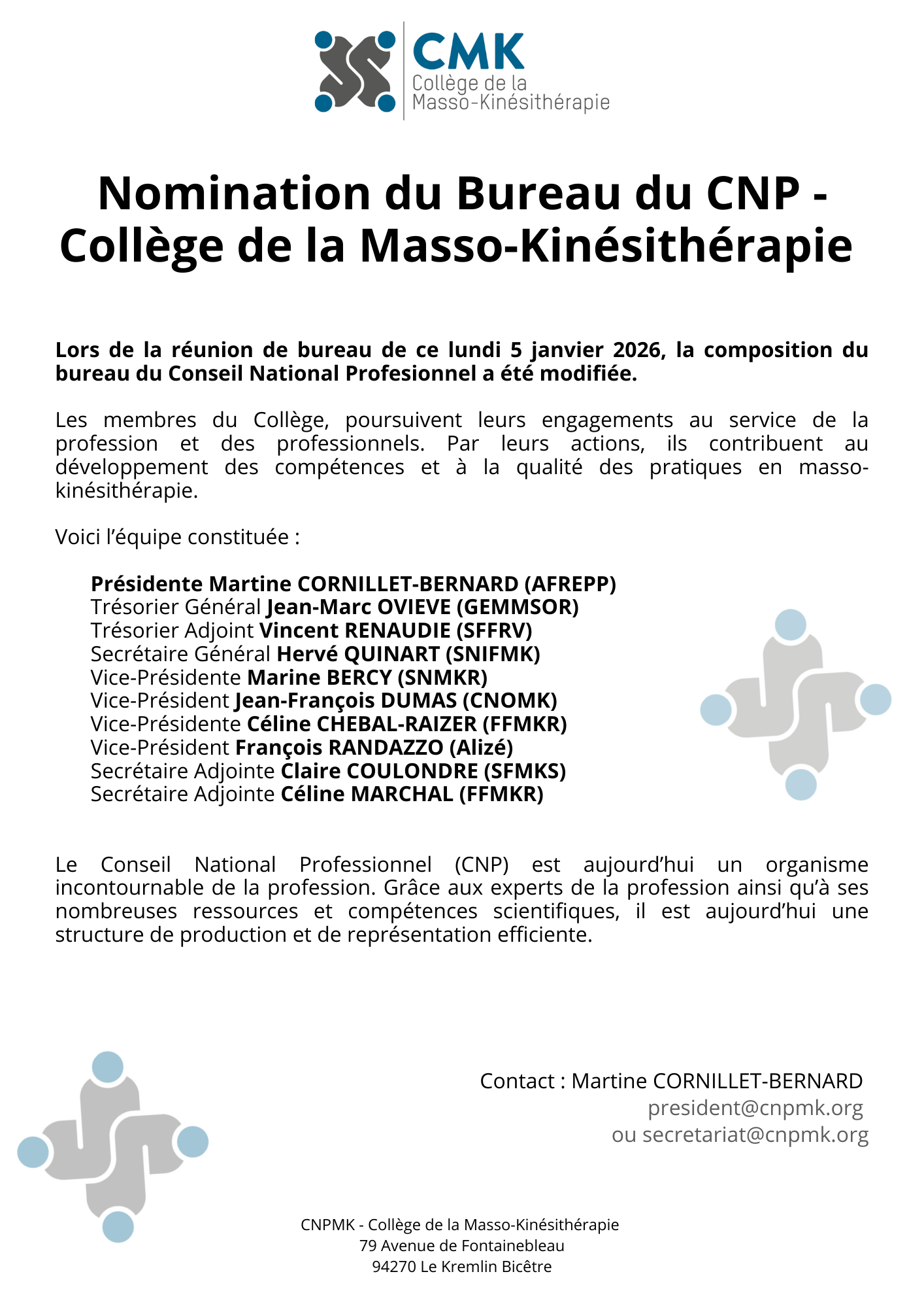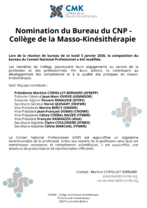 Nomination du Bureau du CNP – Collège de la Masso-Kinésithérapie Lundi 5 janvier 2026